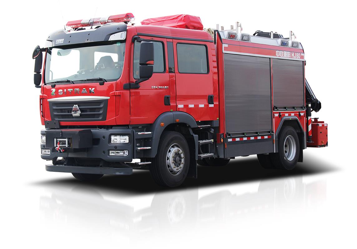 ? ? ? 中聯(lián)重科**三代HJ80型化學(xué)救援消防車(chē),結(jié)合國(guó)內(nèi)外消防車(chē)的先進(jìn)理念和消防實(shí)戰(zhàn)創(chuàng)新設(shè)計(jì)而成,整車(chē)結(jié)構(gòu)緊湊,越障能力強(qiáng),可裝備化學(xué)洗消系統(tǒng)、絞盤(pán)、升降照明系統(tǒng)、起吊機(jī)、液壓破拆工具組、偵檢器具、救生器具等超過(guò)80件搶險(xiǎn)救援器材,是集化學(xué)洗消、照明、供電、牽引、起吊、破拆、偵查、救援等功能于一體的多功能消防車(chē),具備強(qiáng)大的搶險(xiǎn)功能和綜合救援能力,是化學(xué)事故、火災(zāi)、地震、抗洪、車(chē)禍等各類(lèi)災(zāi)害搶險(xiǎn)救援的主力車(chē)型。