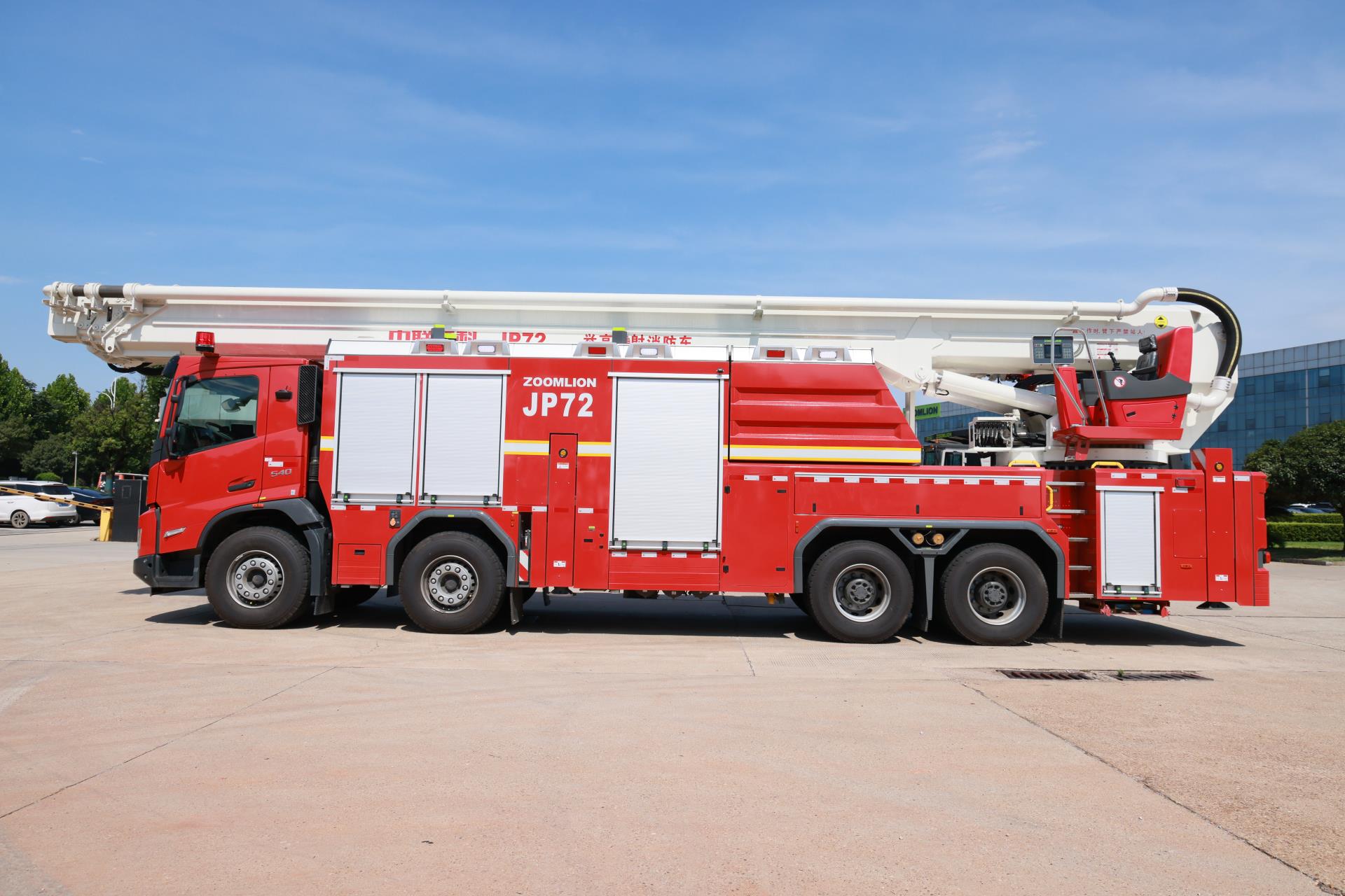 中聯(lián)牌JP72型舉高噴射消防車(chē),具備強(qiáng)大的滅火功能,整車(chē)性能優(yōu)越,快速高效,操作性、安全性及智能化控制水平處于國(guó)內(nèi)先進(jìn)水平。車(chē)輛采用輕量化四節(jié)伸縮主臂+三節(jié)側(cè)置伸縮曲臂結(jié)構(gòu),兼顧大高度、大幅度、大流量高空滅火作業(yè),可應(yīng)對(duì)各類(lèi)復(fù)雜環(huán)境滅火救援,適用于城鎮(zhèn)、港口、工礦企業(yè)高層建筑以及石油、化工、油罐、倉(cāng)庫(kù)等大型建筑火災(zāi)撲救。
