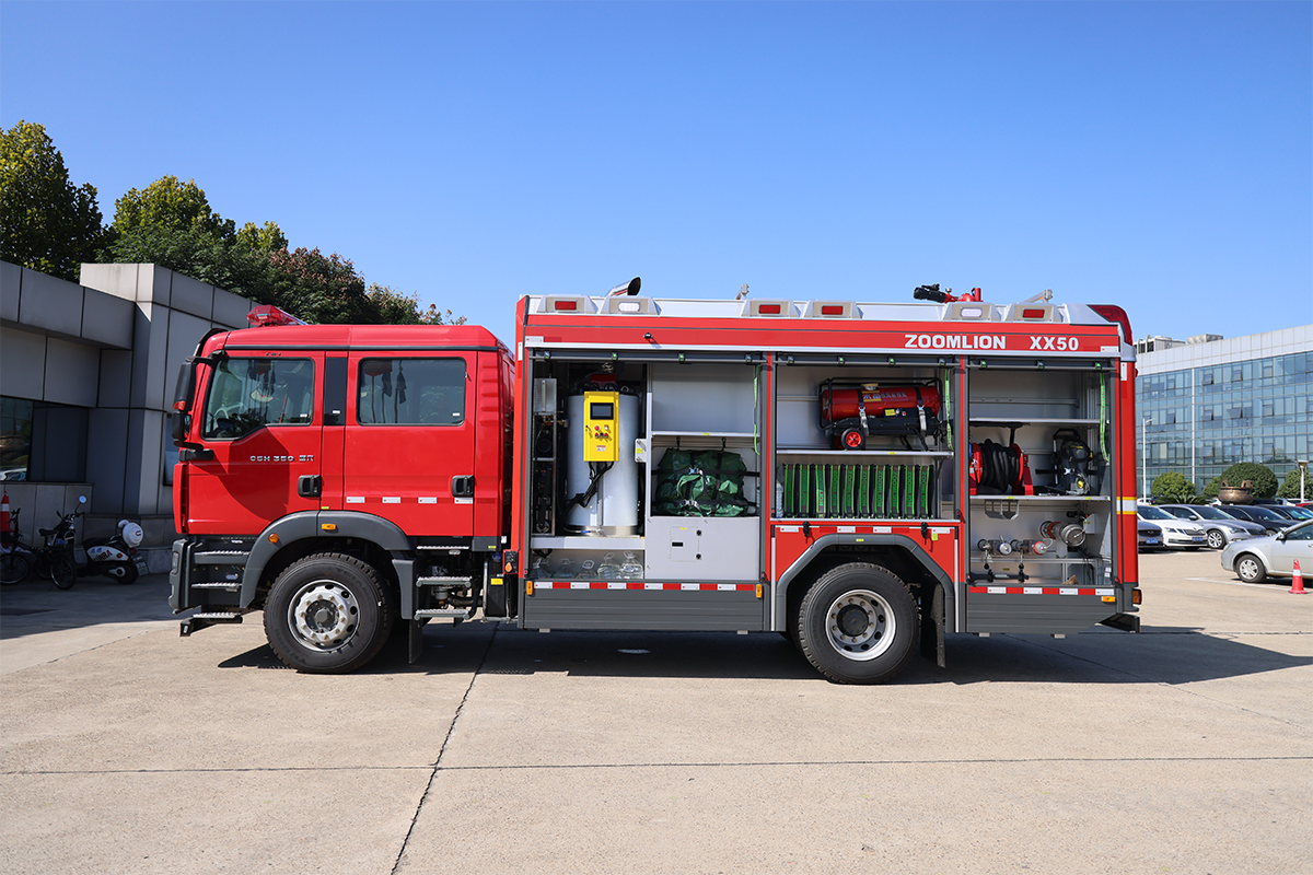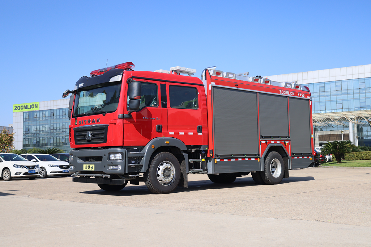 中聯(lián)牌XX50型洗消消防車,是專門針對?;鹿示仍?、被污染的人員及地面設(shè)備進(jìn)行洗消而研制的新型特種車輛。車輛集成化學(xué)洗消、消防滅火、應(yīng)急照明三大功能模塊,具備強(qiáng)大的綜合救援能力,一車多用,適用于消防應(yīng)急救援履行滅火和化學(xué)事故處理等任務(wù)。