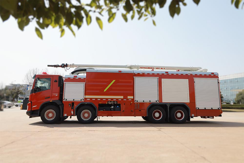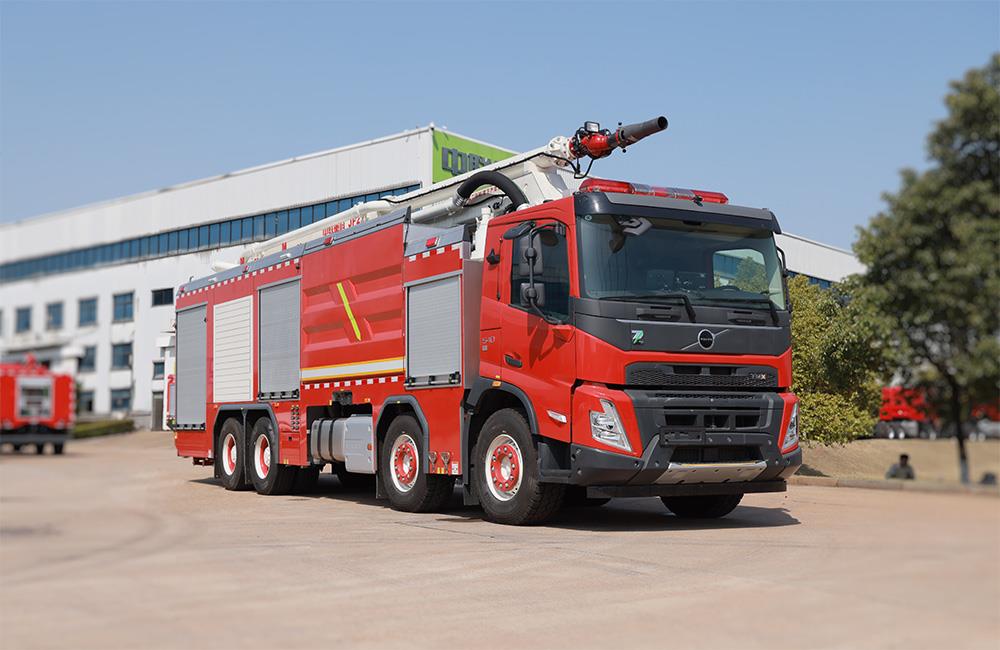 ? ? ? ?車輛選用國際知名品牌沃爾沃 FM540 84R B消防專用底盤,駕駛舒適、動力強勁;該車運用了折疊式臂架技術(shù)、正壓式泡沫比例混合、車載式壓縮空氣、氣液比例混合等多種先進技術(shù);其中水、泡沫、空氣三者實時精準控制,顯著提高了泡沫的發(fā)泡倍數(shù),提升了滅火效率;可適用于石油化工、煤化工等場所火災(zāi)的撲救。