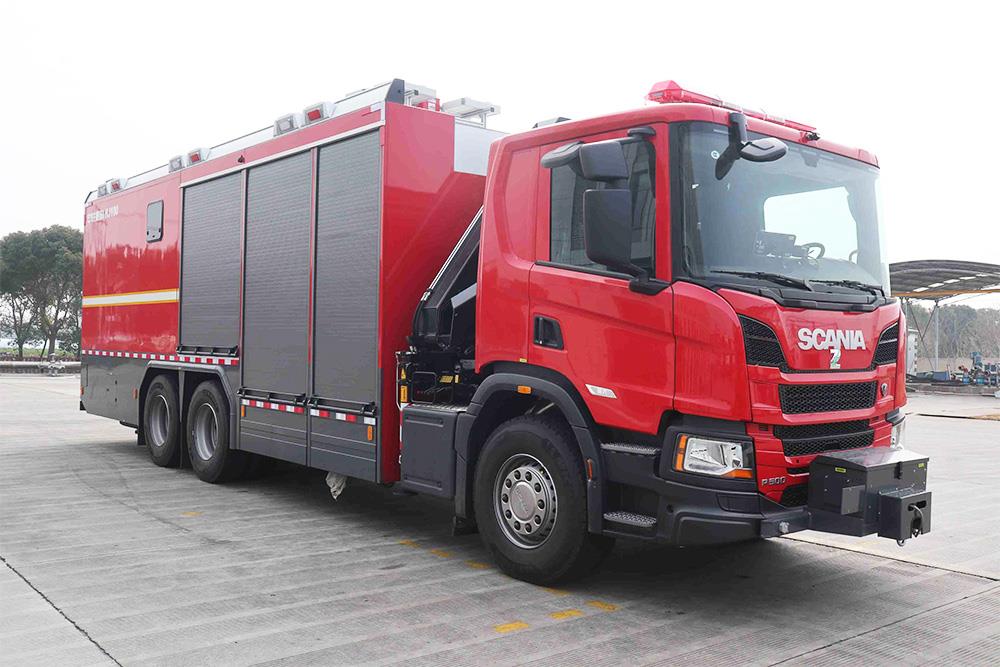 ? ? ? 中聯(lián)重科HJ100化學(xué)救援消防車是公司基于斯堪尼亞P500 6×4高性能底盤打造,集化學(xué)洗消、搶險(xiǎn)救援、照明、重型起吊等多功能于一體的多功能救援平臺(tái)。該車采用輕量化鋁合金車身結(jié)構(gòu),配備國(guó)際頂級(jí)子系統(tǒng)(包括比利時(shí)TEKLITE照明系統(tǒng)、冠軍7.5噸級(jí)電動(dòng)絞盤、希爾博起吊機(jī)等),可搭載100余件專業(yè)救援器材,集化學(xué)洗消、照明、供電、牽引、起吊、破拆、偵查、救援等功能于一體的多功能消防車;具備強(qiáng)大的搶險(xiǎn)和化學(xué)救援能力,可滿足化學(xué)泄漏、地震災(zāi)害、洪澇事故、車禍等復(fù)雜場(chǎng)景下的綜合救援需求,是國(guó)內(nèi)領(lǐng)先的模塊化多功能救援平臺(tái)。