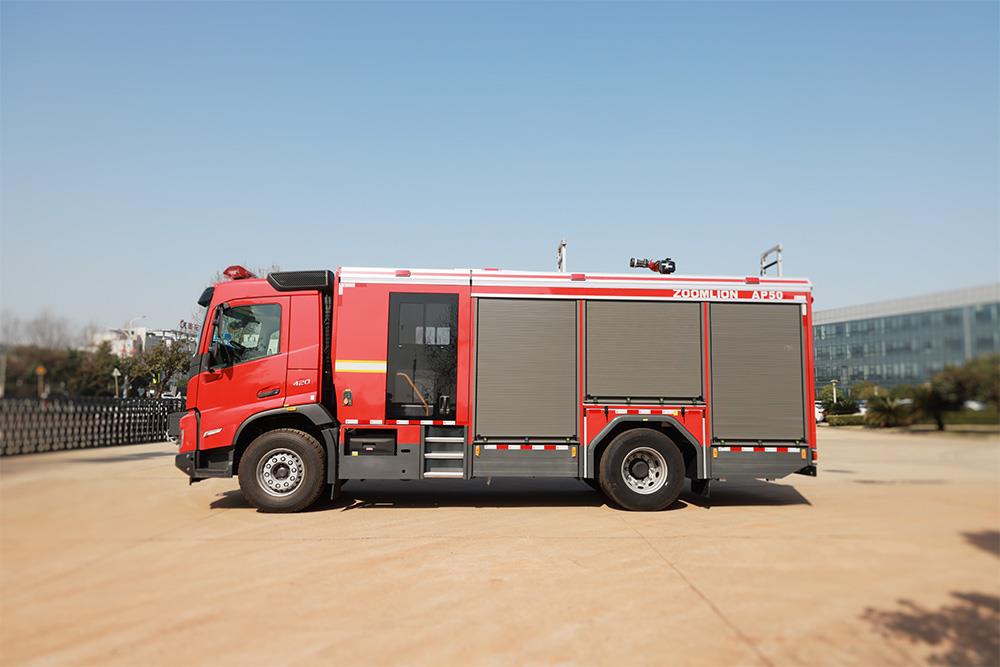 整車裝備了先進的壓縮空氣泡沫系統(tǒng),采用集成式控制面板,具有操作方便快捷、滅火效率高、環(huán)保、滅火造成的次生損失小等特點;全鋁合金車身,自重輕,強度高,防腐蝕性能好;器材箱采用專用鋁合金層架板搭接而成,可上下自由調(diào)節(jié),空間利用率高,器材配備多,取用方便;配置多項安全保護措施做到全方位防護,保證車輛安全可靠;整車還裝備絞盤、升降照明系統(tǒng),可攜帶破拆工具、救生器具等多類器材,是火災(zāi)、抗洪、車禍等各類災(zāi)害滅火救援的主力車型。