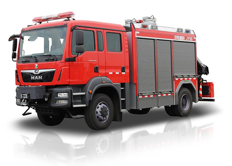 ??? ? ? ? 中聯(lián)重科ZLF5144TXFJY98型搶險救援消防車是我公司應(yīng)用新技術(shù)、新工藝、新材料自主研發(fā)的新型主戰(zhàn)消防車。該車采用德國曼商用車輛股份公司TGM 18.290 4X4 BB型二類底盤改裝,結(jié)合國內(nèi)外搶險救援消防車的先進理念進行創(chuàng)新設(shè)計而成,整車集照明、供電、牽引、起吊、破拆、偵查、救援等功能于一體的多功能消防車,適用于裝備機場、碼頭、石化、高速公路、城市等消防場所,是公安消防部隊和企業(yè)專職消防隊必配的消防裝備。
