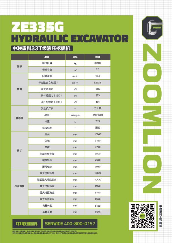 中聯(lián)重科33T級(jí)履帶式液壓挖掘機(jī)-ZE335G